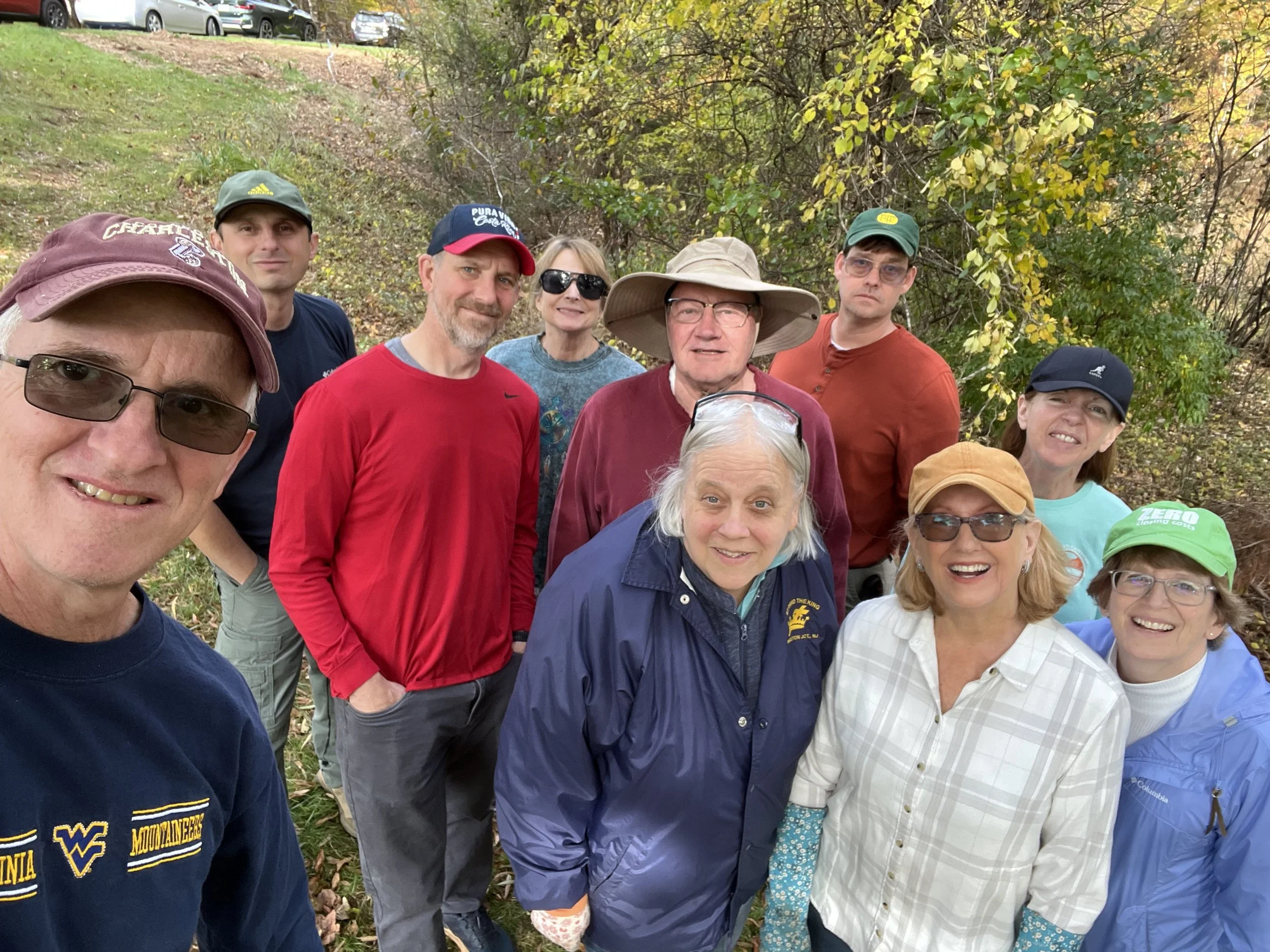Organized efforts to control invasive plants within the Forest Lakes community in Albemarle County began in January 2025. That’s when long-time resident John Oliver solicited volunteers (via the community’s newsletter) to join him in managing invasives. John became interested in invasives a few years earlier when he noticed the spread of Autumn Olive plants and the proliferation of vines threatening trees throughout the area. He educated himself primarily via the Blue Ridge PRISM site and had been cutting vines, but realized that a larger group effort would be needed to get ahead of and minimize harm to our beautiful wooded common areas.