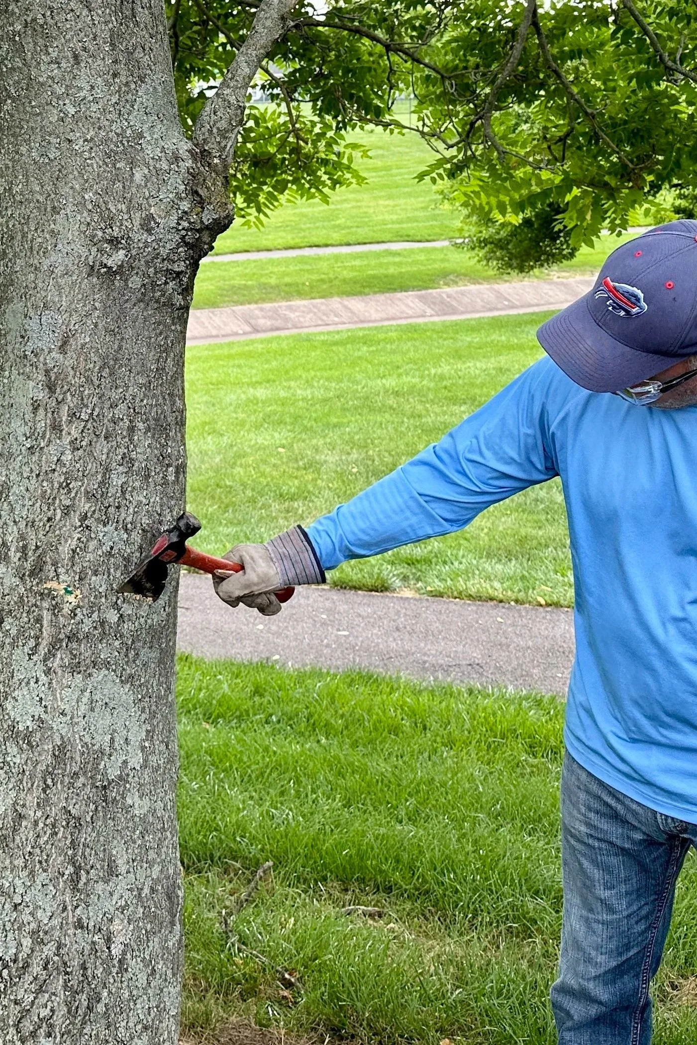 Nota: Si no deja espacio entre los cortes, es probable que las raíces produzcan brotes. Si el tronco está completamente rodeado, el herbicida no puede trasladarse a las raíces.