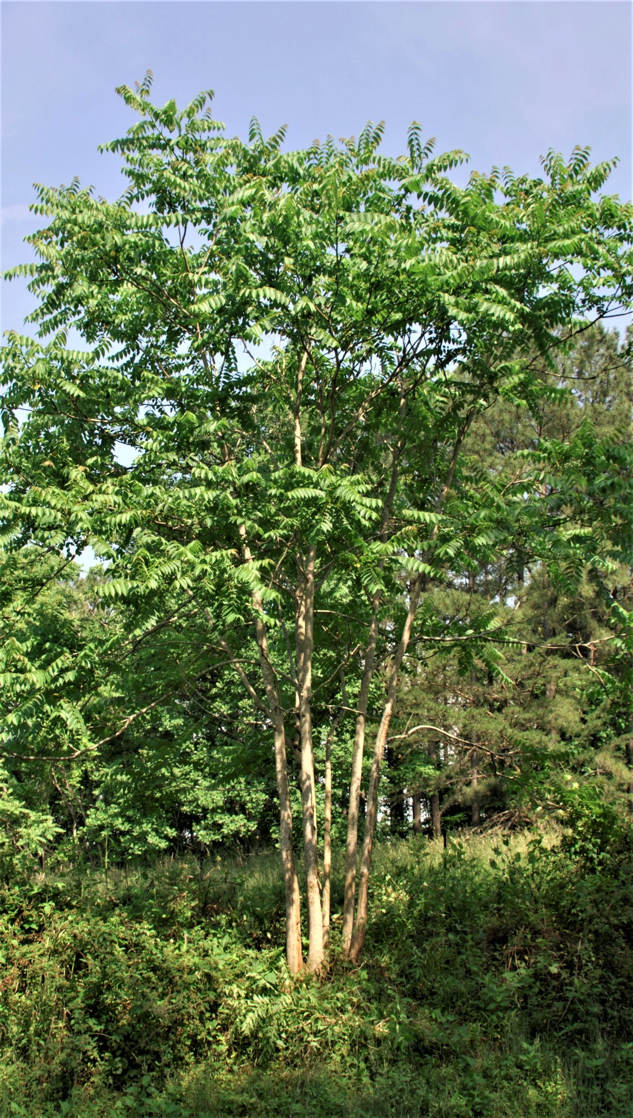 Debido a su rápido crecimiento, este árbol puede establecerse rápidamente. Tiene una madera débil y puede alcanzar una altura de hasta 24 metros a lo largo de los caminos. El árbol del cielo crece en colonias que se extienden rápidamente a partir de nuevos brotes que surgen de su sistema de raíces. Los intentos de controlarlo requieren una gran diligencia debido a su abundante producción de semillas, su alta tasa de germinación y su vigorosa reproducción vegetativa.