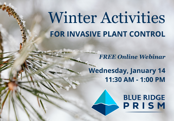 Join Jacob Edel, Invasive Management Specialist at Blue Ridge PRISM and the Botanical Garden of the Piedmont in Charlottesville for this FREE field training where you’ll learn how to identify invasive plants in the winter. This session includes a short hike through the woods on trails with uneven surfaces. Space is limited to 10 participants.